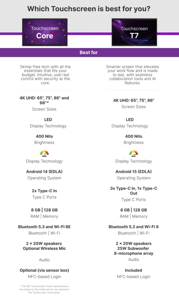 • Experience stress-free teaching, presenting, and note-taking with a suite of AI-enhanced apps that work on any teaching device — but are built to shine on Touchscreen Core.