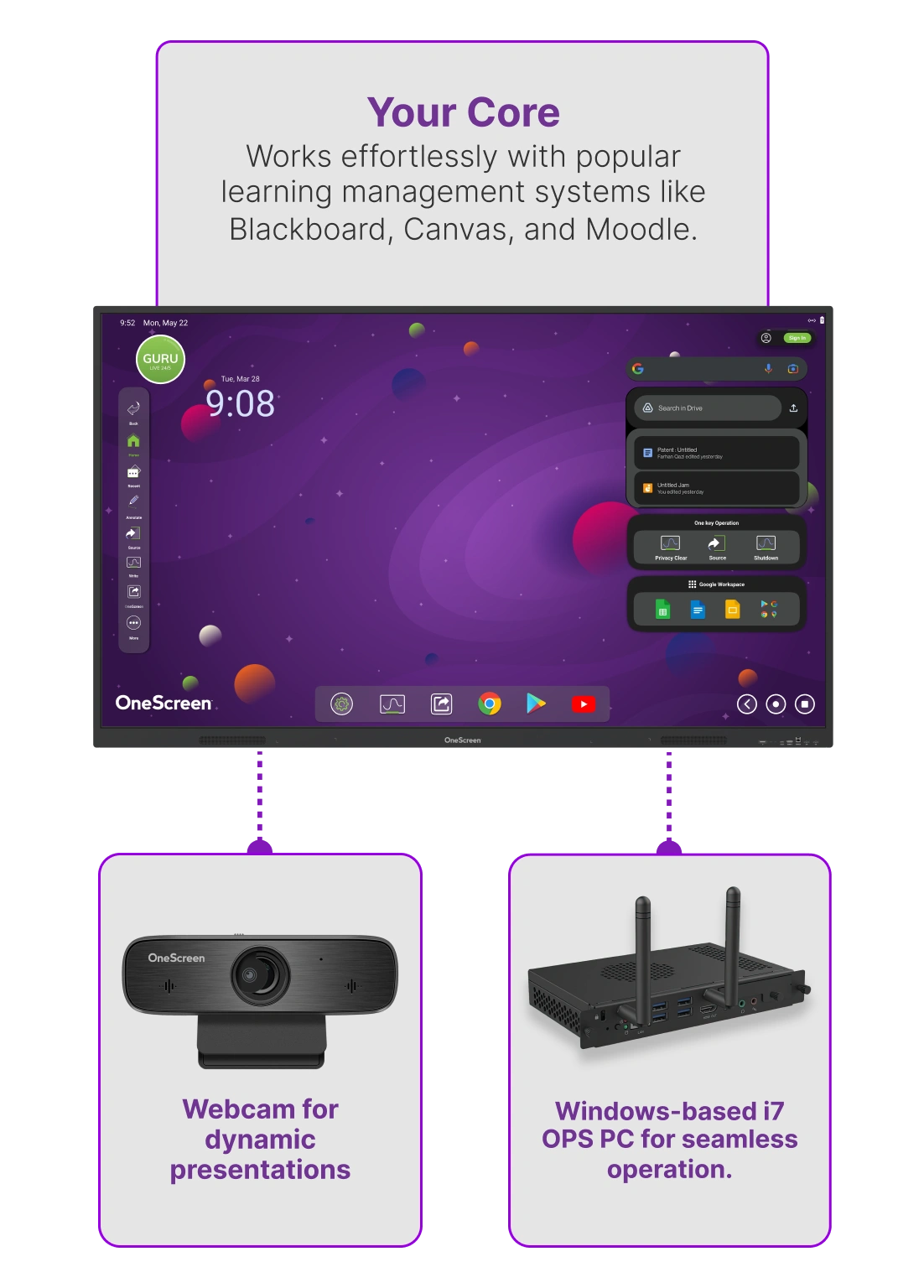 Built-in interactive tools designed to enhance collaboration and productivity on your OneScreen device.