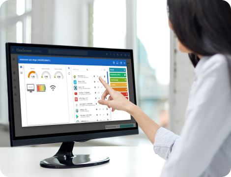 • Connects directly to the OneScreen Account world, helping administrators implement policies, changes, and apps.